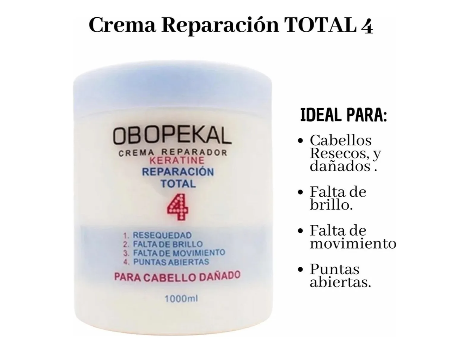 00197 OBOPEKAL® CREMA REPARACION PROFUNDA (TOTAL 4) 1000ML Compartir por WhatsApp Copiar enlace El camino hacia un cabello perfecto requiere de un cuidado especial, y hoy puedes lograr ese cambio de la mano de Obopekal. Libre de crueldad Este producto es elaborado sin lastimar a ningún animal. Presentaciones Selecciona una opción.CREDITO$155CONTADO$130 Observaciones 0 / 150